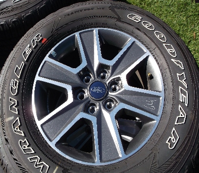 2004 thru 2016 F150/ Expedition Brand new 18" alloy wheel in polished and black. Comes mounted on P275x65x18 Goodyear Fortitude OWL all season premium tires. Includes TPMS, center caps, all new at $1500.00 plus taxes TIRES ARE INCLUDED. |