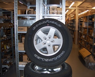 Jeep Wrangler Sahara 17" alloy wheels with 255x75x17 Goodyear tires 5 stud on 5" circle.. Less than 10km on this set. Includes TPMS Not all models} $1000.00 including all taxes |